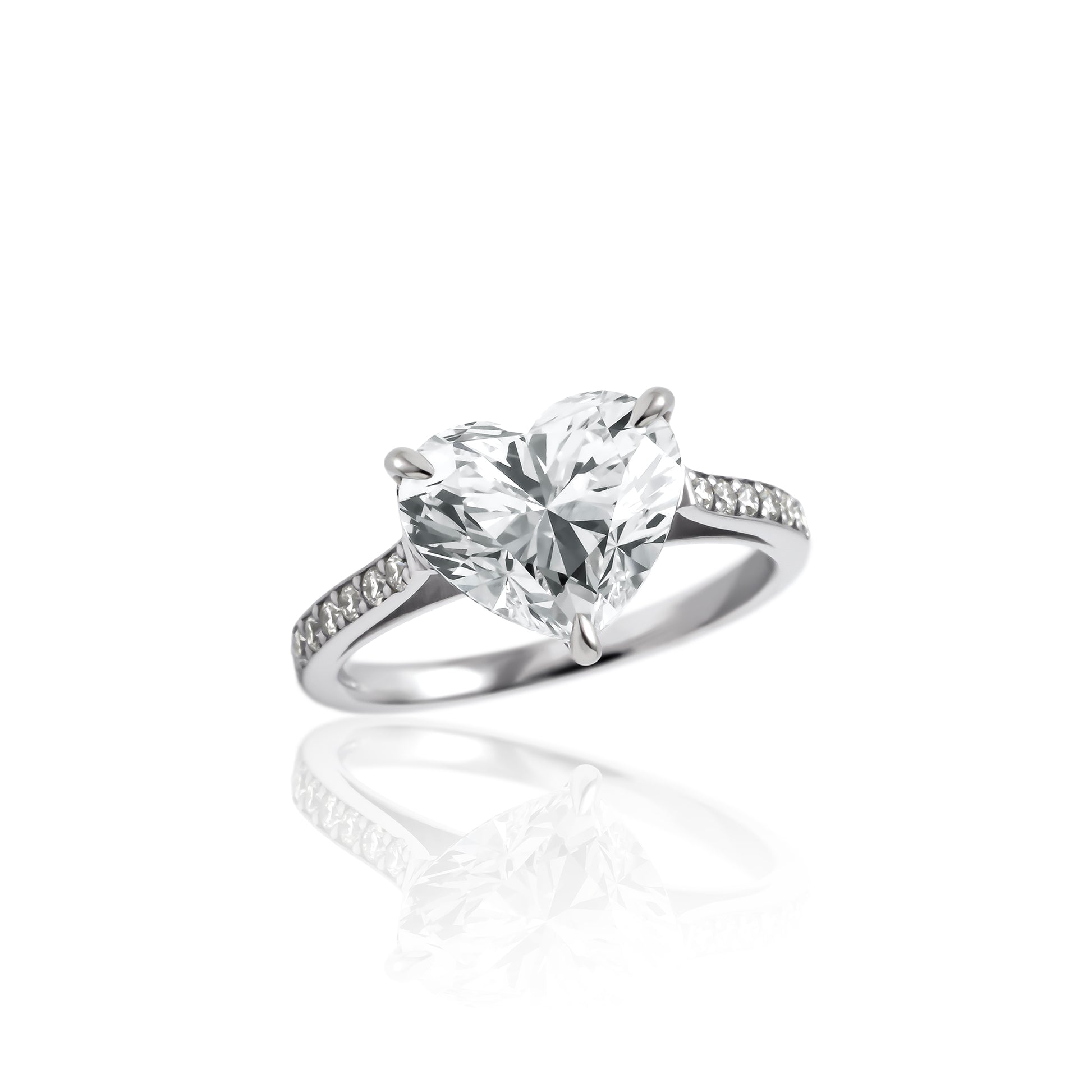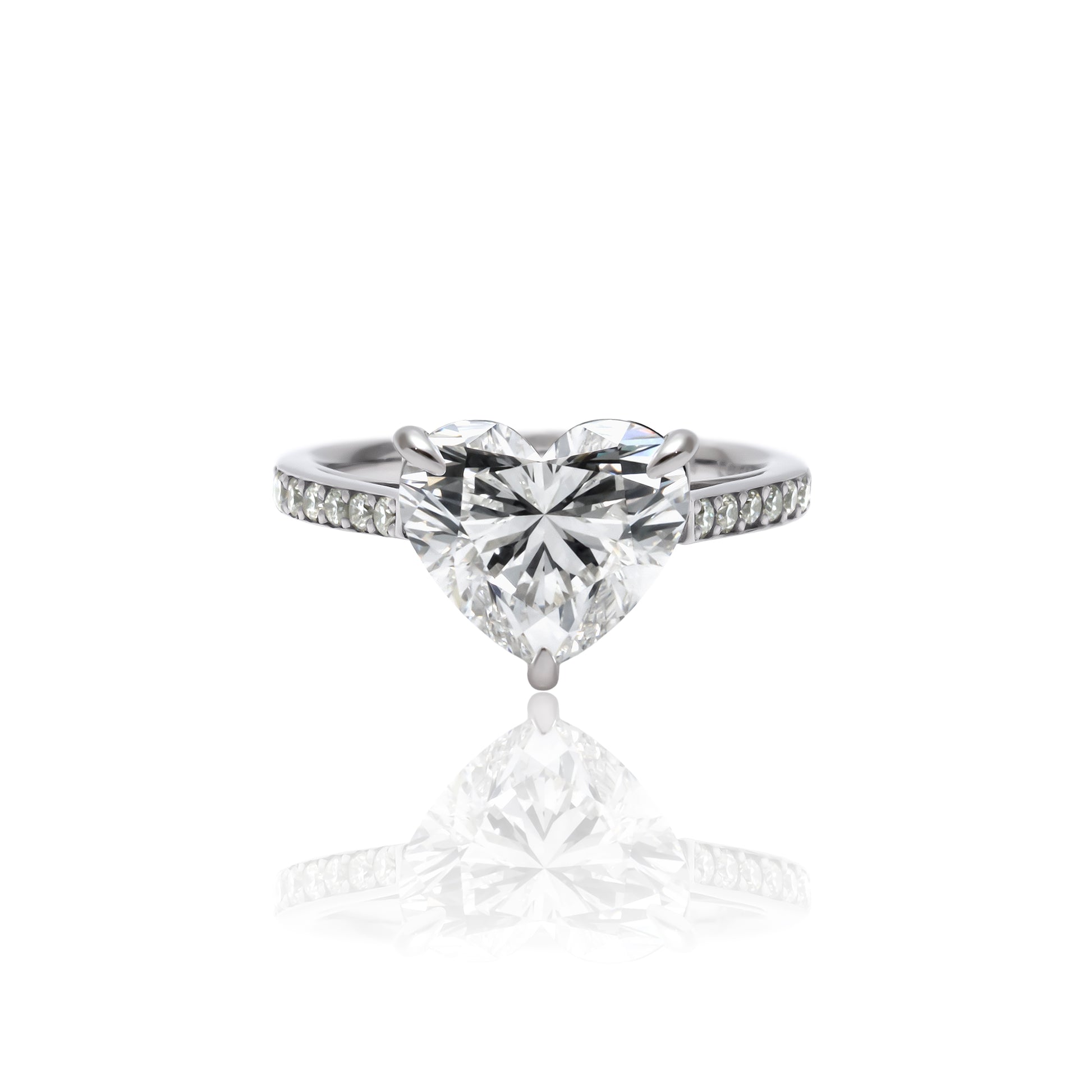 3.0ctのラボグロウンダイヤモンドが放つ圧倒的な輝きを堪能できる、ハートシェイプのリングです。