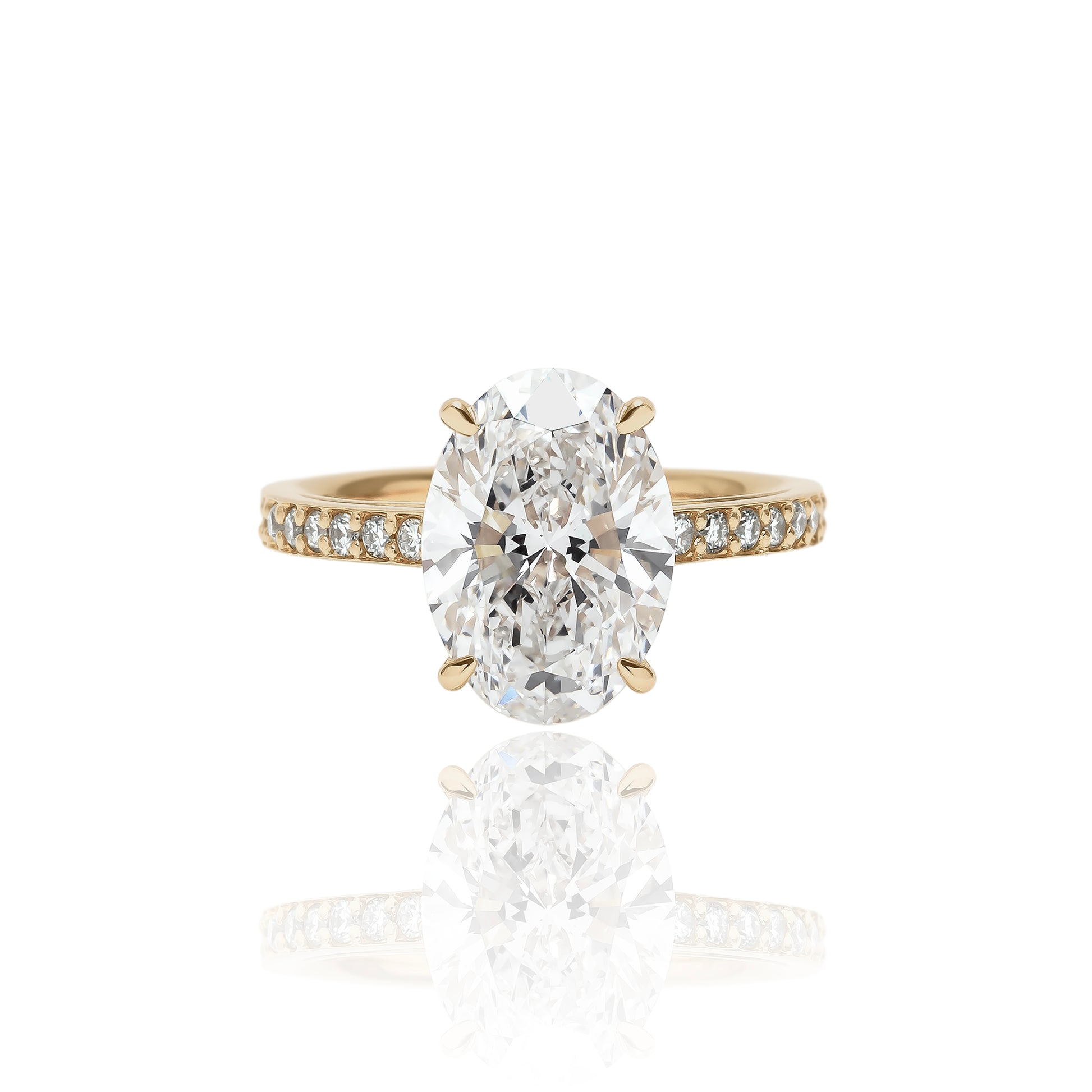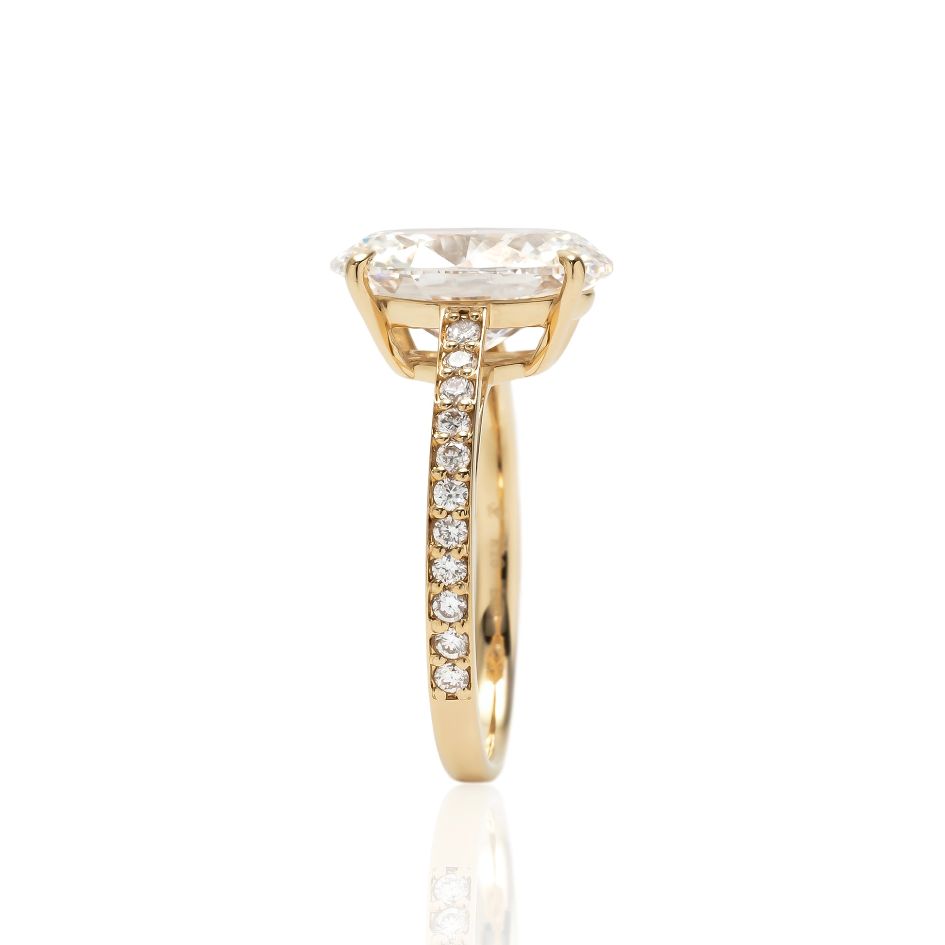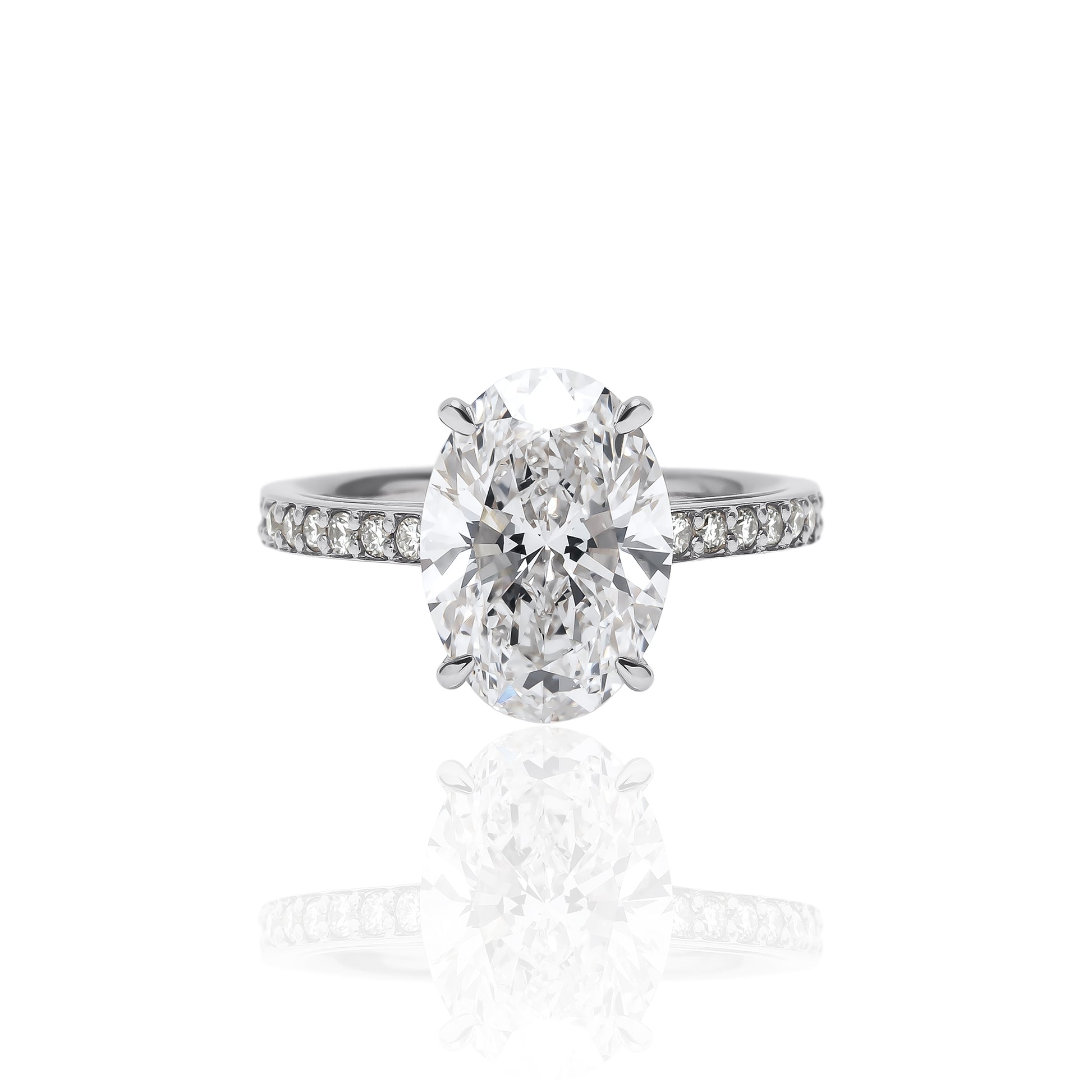 3.0ctのラボグロウンダイヤモンドを贅沢にセッティングした、洗練のオーバルカットリング。