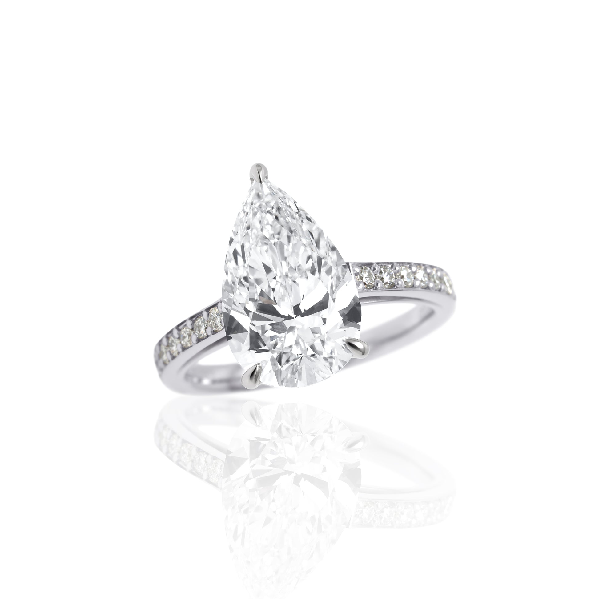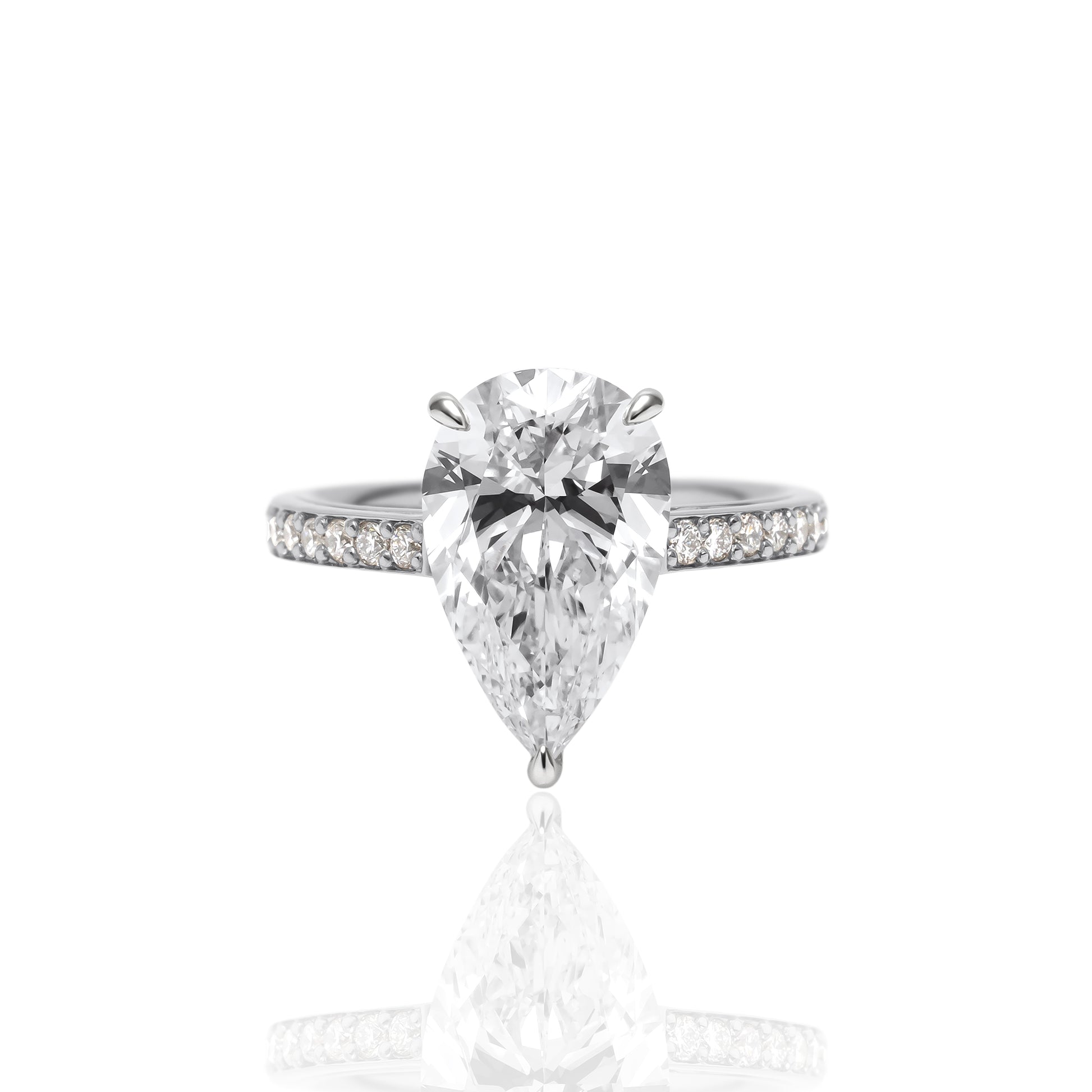3.0ctのラボグロウンダイヤモンドを贅沢に使用した、優美なペアシェイプリング。