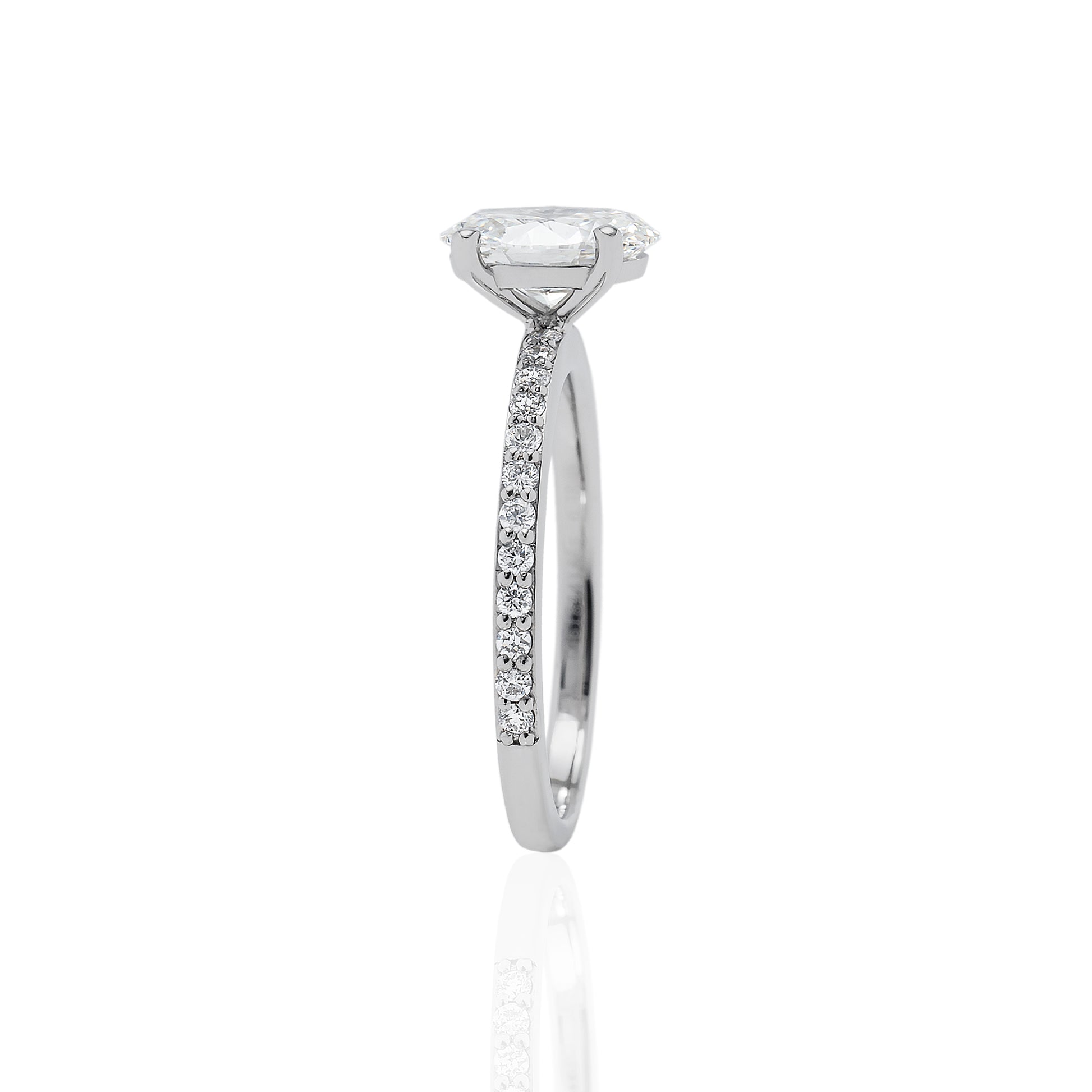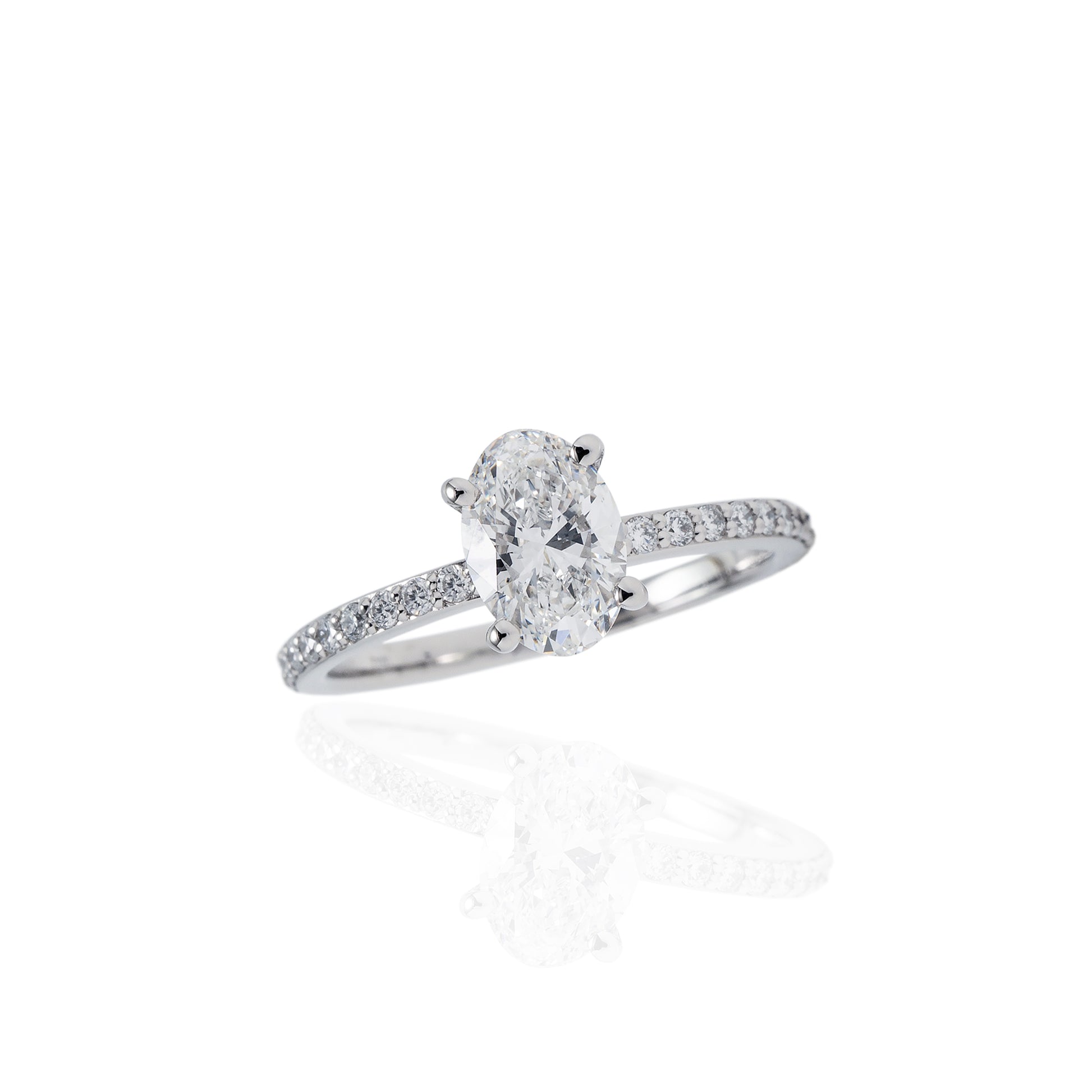 両サイドにセットされたメレダイヤがセンターの1.0ctをより引き見える高級感あるリングです。