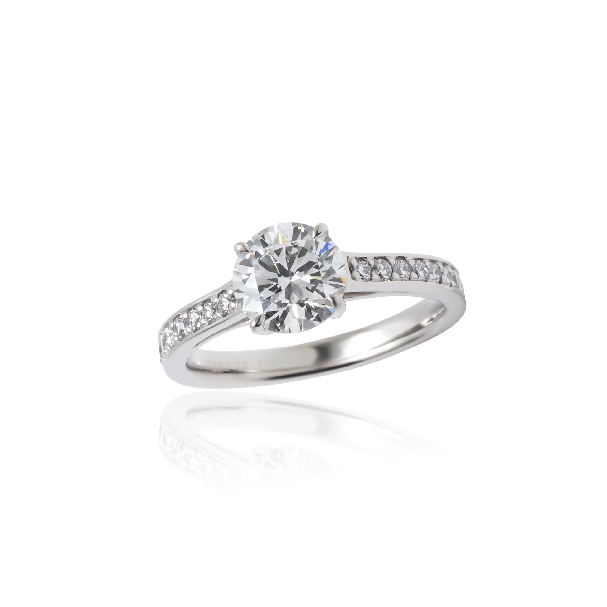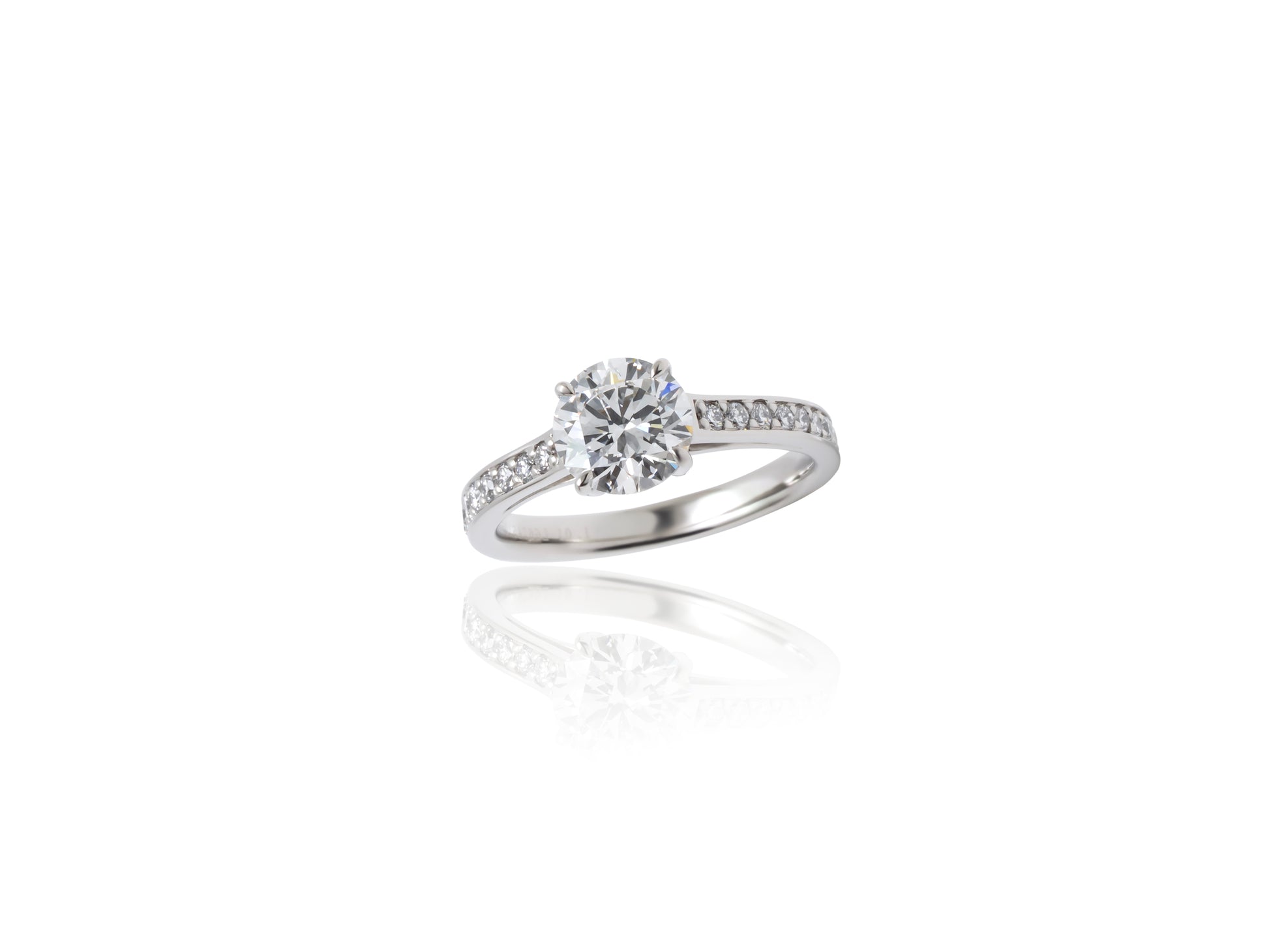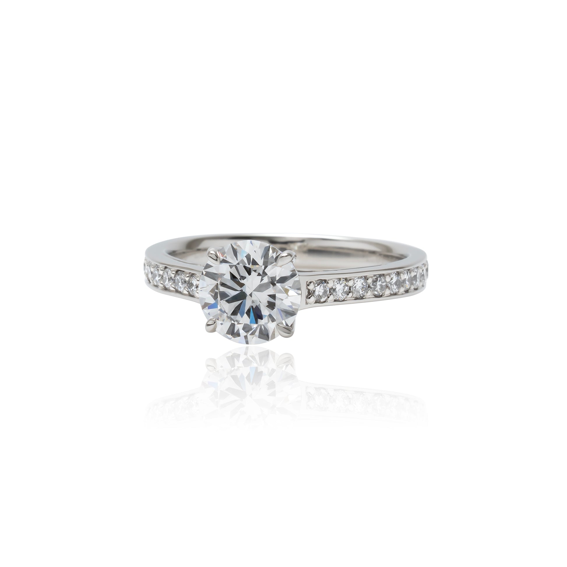 両サイドにセットされたメレダイヤがセンターの1.0ctをより引き立ったできる