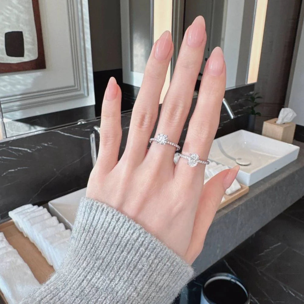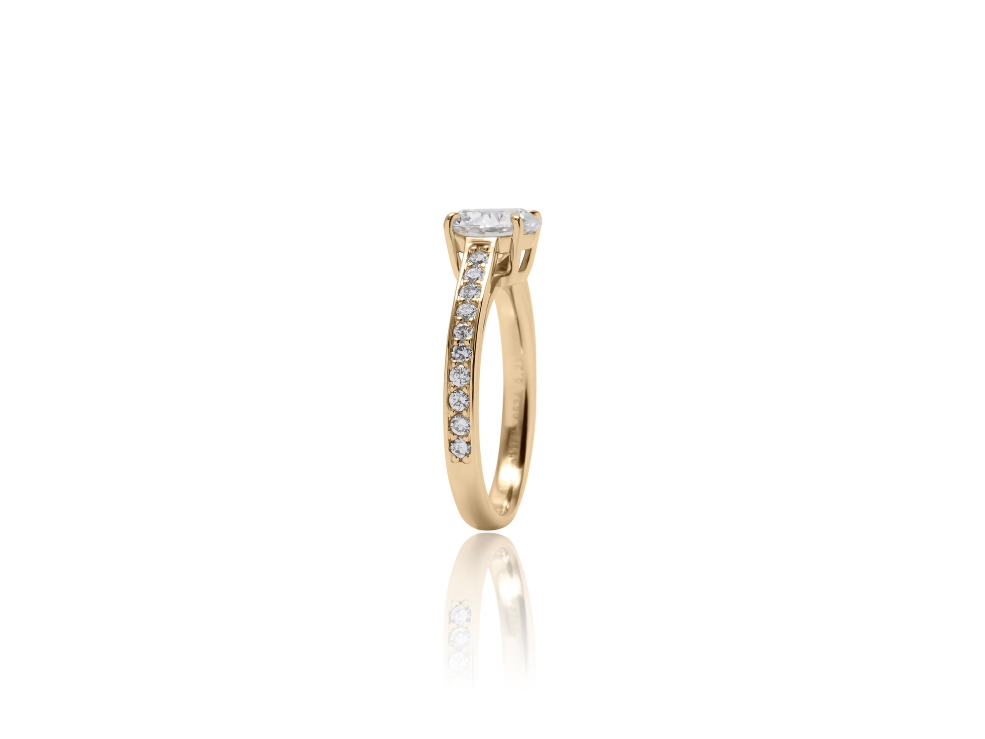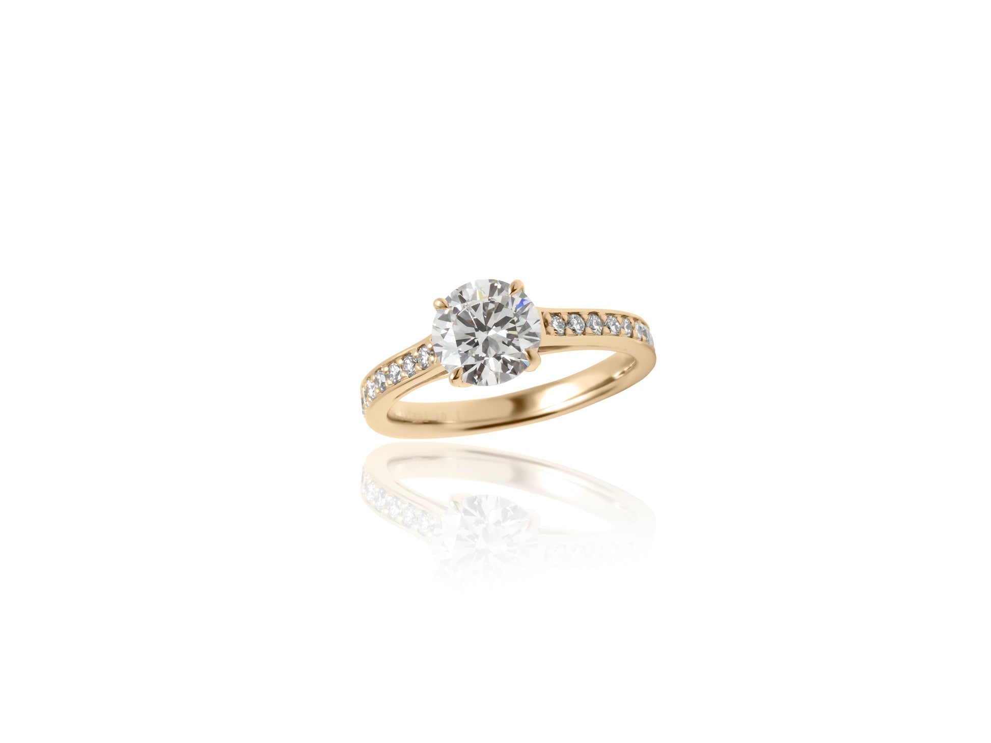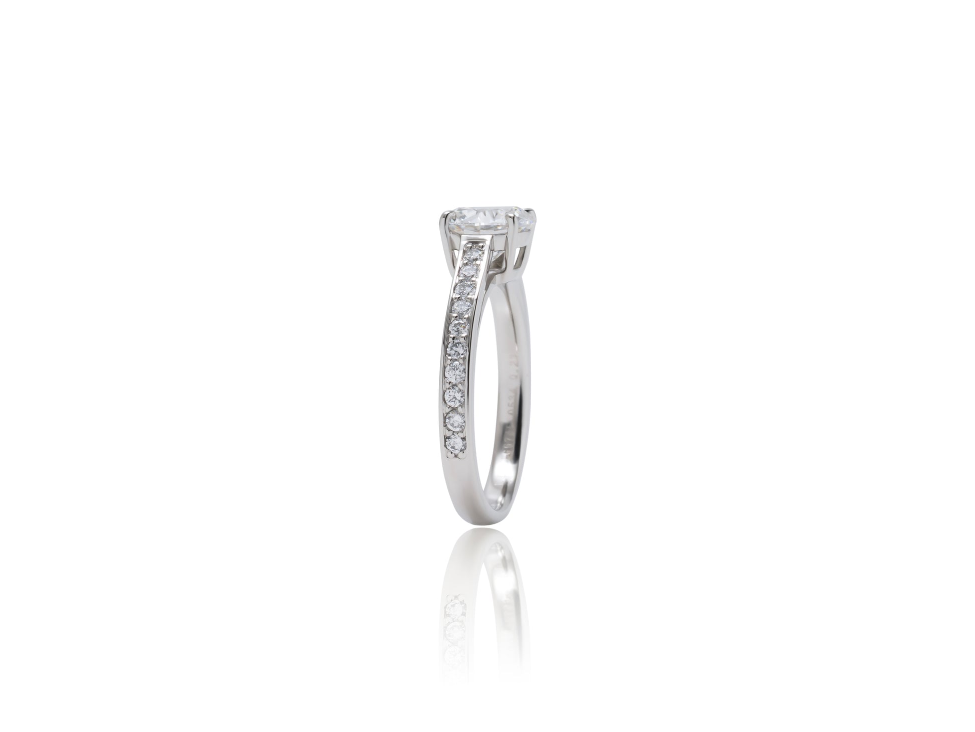 両サイドにセットされたメレダイヤがセンターの1.0ctをより引き立ったできる